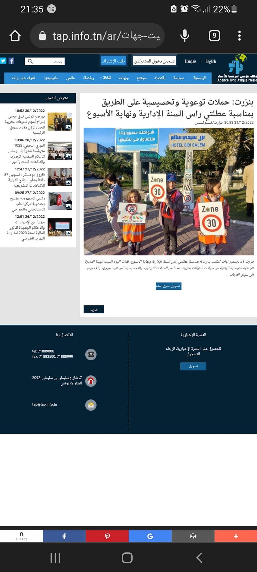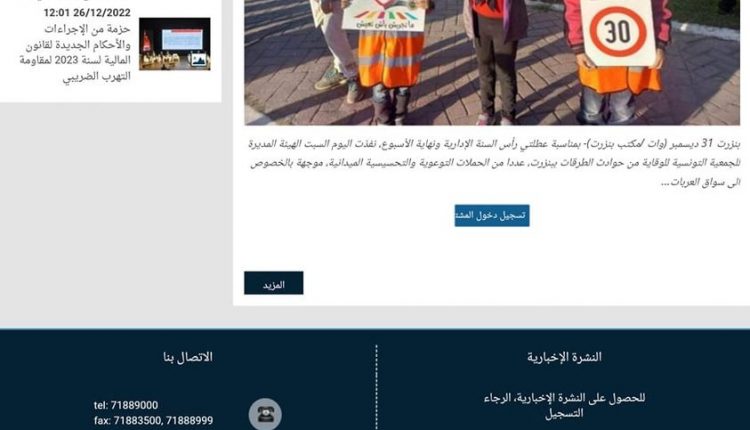إنّ المعلومات المنشورة على هذا الموقع وما لم ينص على خلاف ذلك، هي متاحة بموجب القانون، وعلى الرغم من العناية المبذولة من قبل فريق التحرير والفنيين لكتابة النصوص وتوضيبها، فإنّه لا يمكن استبعاد حصول أخطاء مطبعية أو فنية ، وتحتفظ ولاية بنزرت بحق تصحيح هذه الأخطاء في أي وقت حال علمها بها.