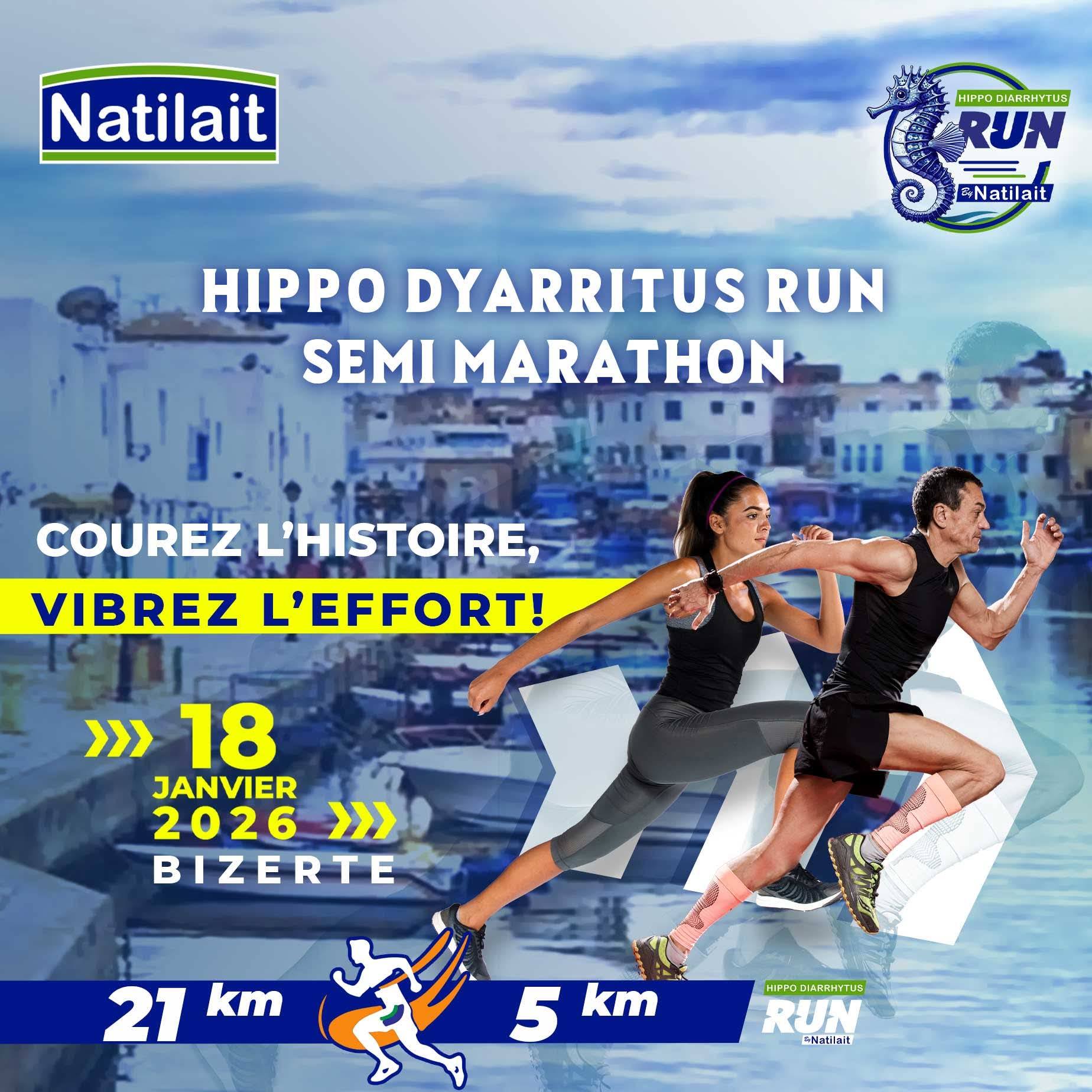 **صباح الاحد المقبل 18 جانفي الجاري: *اكثر من 1600 مشارك ضمن فعاليات الدورة الأولى لتظاهرة نصف المارطون ” هيبودياريتوس باي ناتيلي”