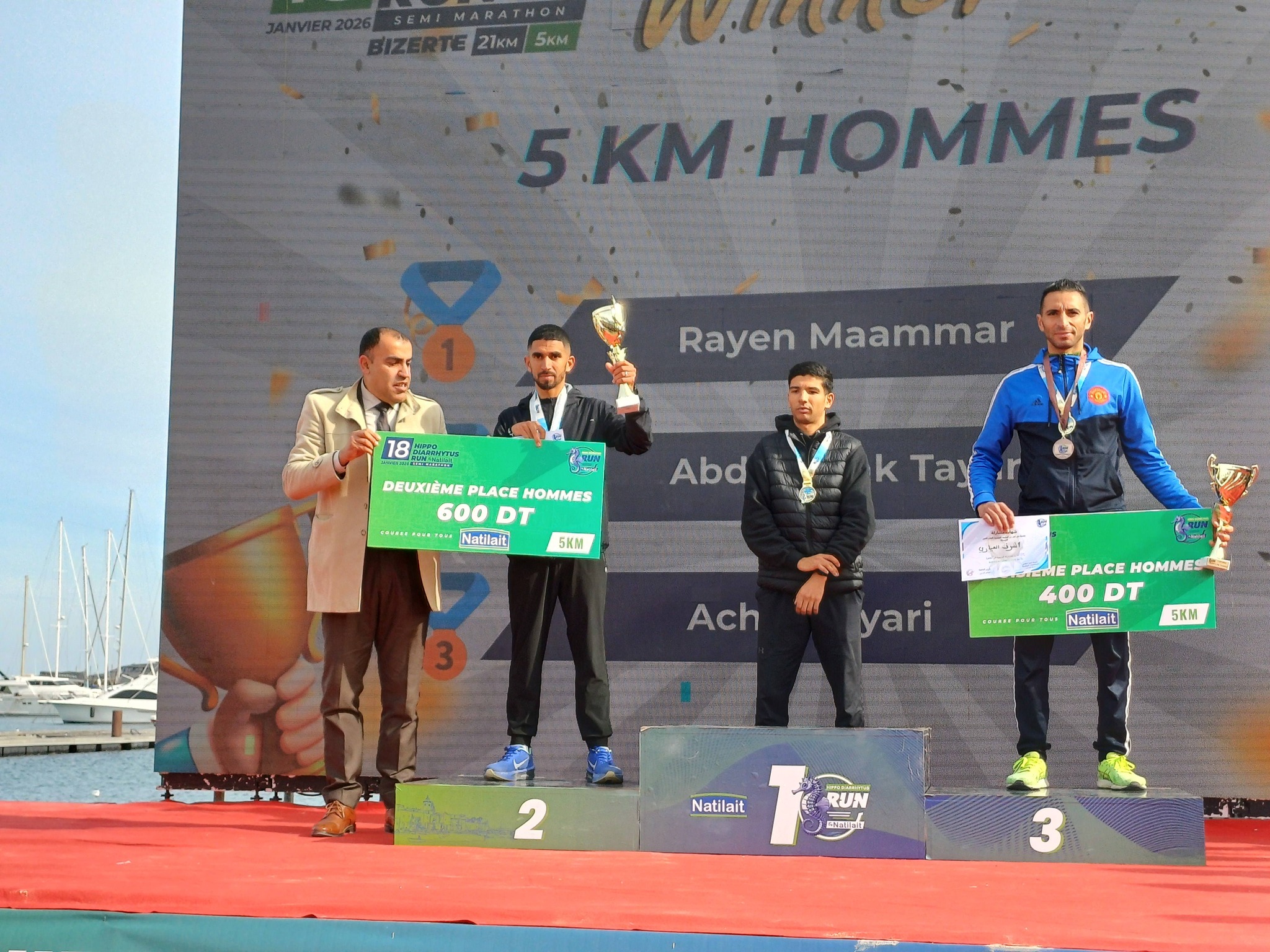 يشار ان فعاليات الدورة واكبها إلى جانب #والي #بنزرت كل من الكاتب العام للولاية عبد اللطيف حميد ومعتمدة بنزرت الشمالية سامية بوعلاق والكاتبة العامة المكلفة بتسيير بلدية بنزرت ايمان الزواوي ونائب رئيس الجامعة التونسية لالعاب القوى مريم الجندوبي والمندوب الجهوي للشباب والرياضة رياض عزيز والمديرة الجهوية للصحة الدكتورة سلمى مشيرقي والمندوب الجهوي للسياحة سفيان بن صالحين وأعضاء مجلس نواب الشعب سامي التوجاني وفتحي المشيرقي وعدنان العلوش والقيادات العليا والقاعدية الداعمة للجنة التنظيم من الهياكل ارسمية والنسيجين المنظماتي والجمعياتي والمجتمعي عموما .