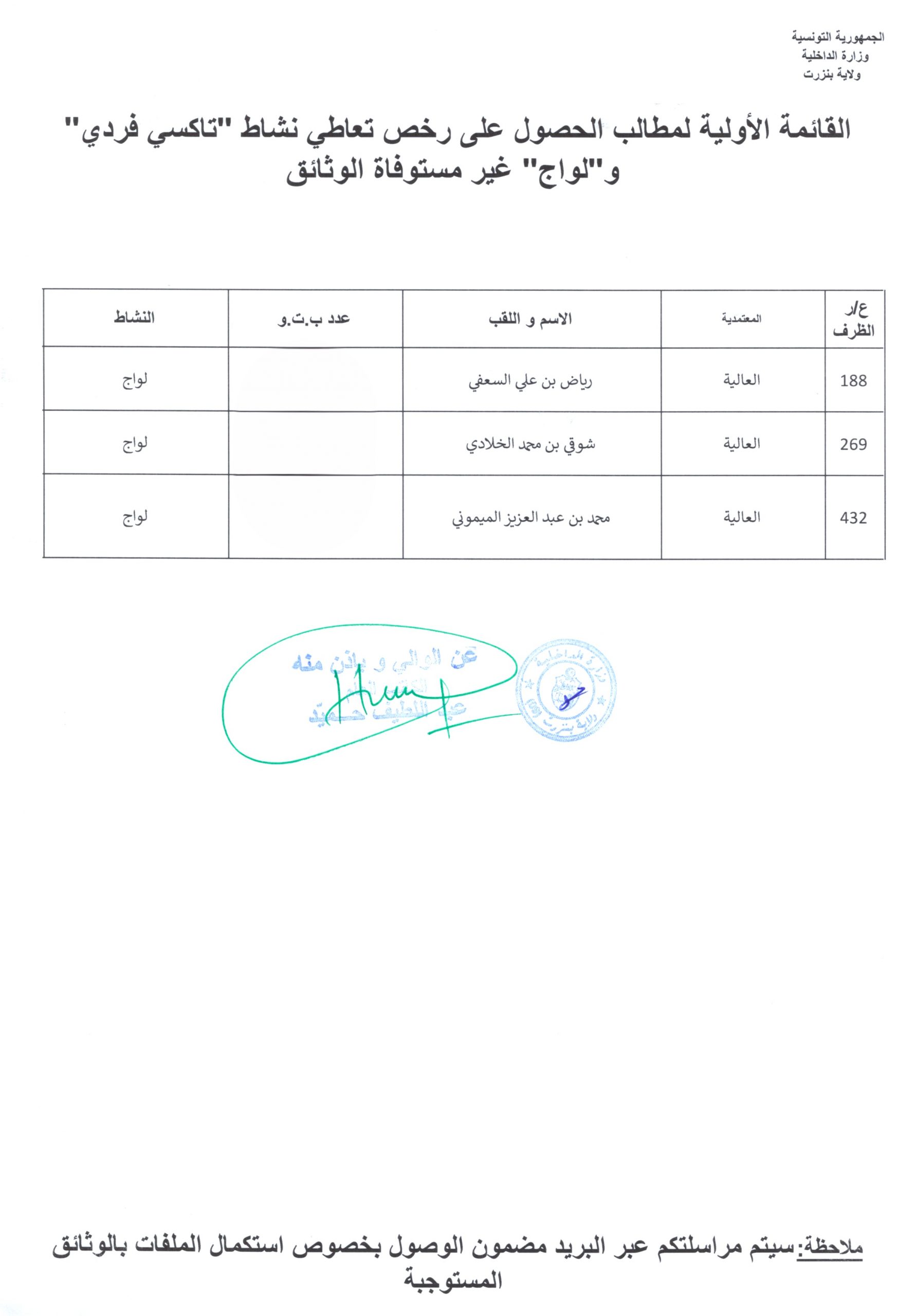 بلاغاتنشاط ** القائمة الأولية لمطالب الحصول على رخصة تعاطي نشاط ” تاكسي فردي ” و” لواج ” غير المستوفاة الوثائق بمعتمدية العالية في فبراير 18, 2026 0 عدد المشاهدات : 24 0 Share