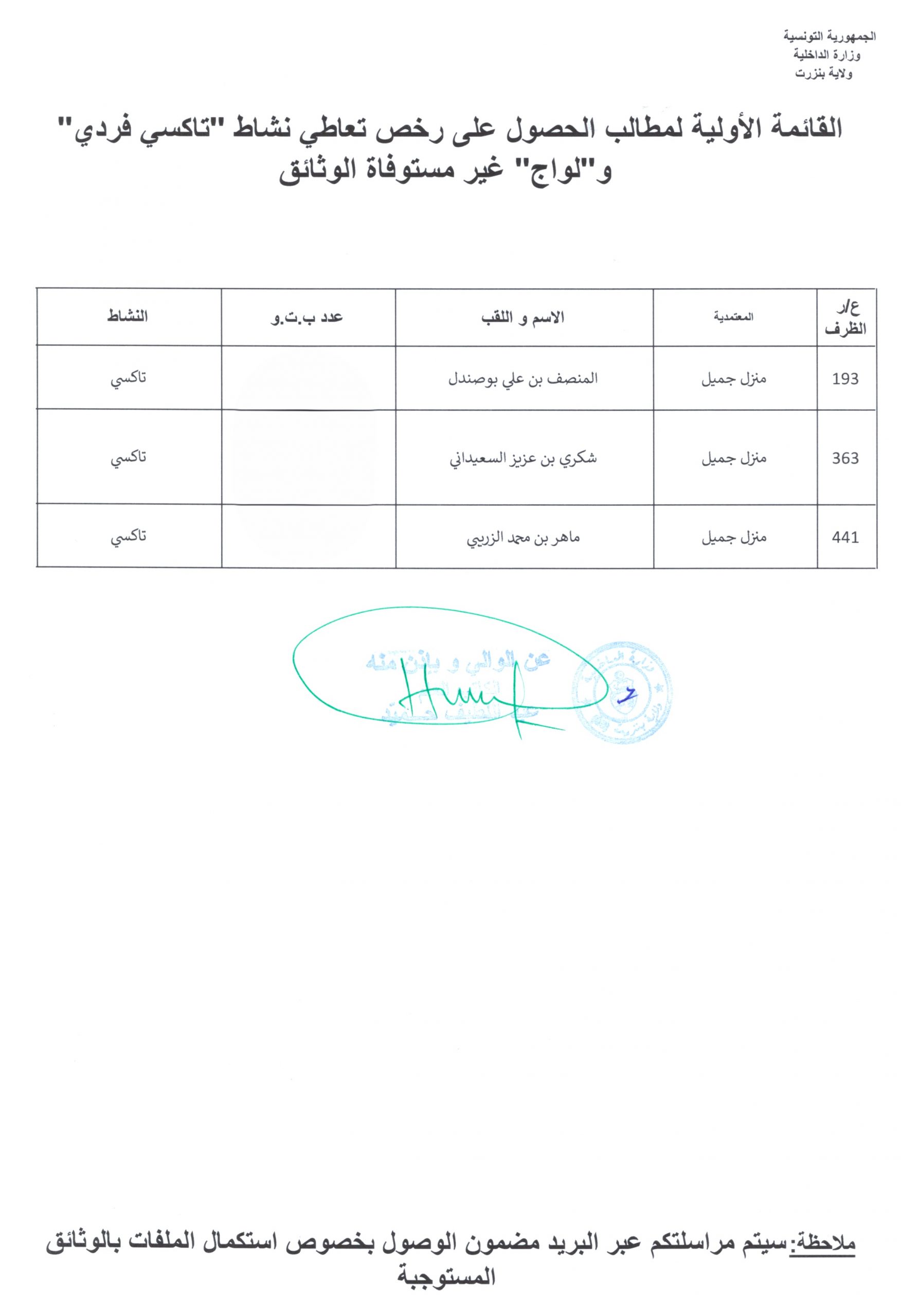بلاغاتنشاط ** القائمة الأولية لمطالب الحصول على رخصة تعاطي نشاط ” تاكسي فردي ” و” لواج ” غير المستوفاة الوثائق بمعتمدية منزل جميل في فبراير 18, 2026 0 عدد المشاهدات : 33 0 Share