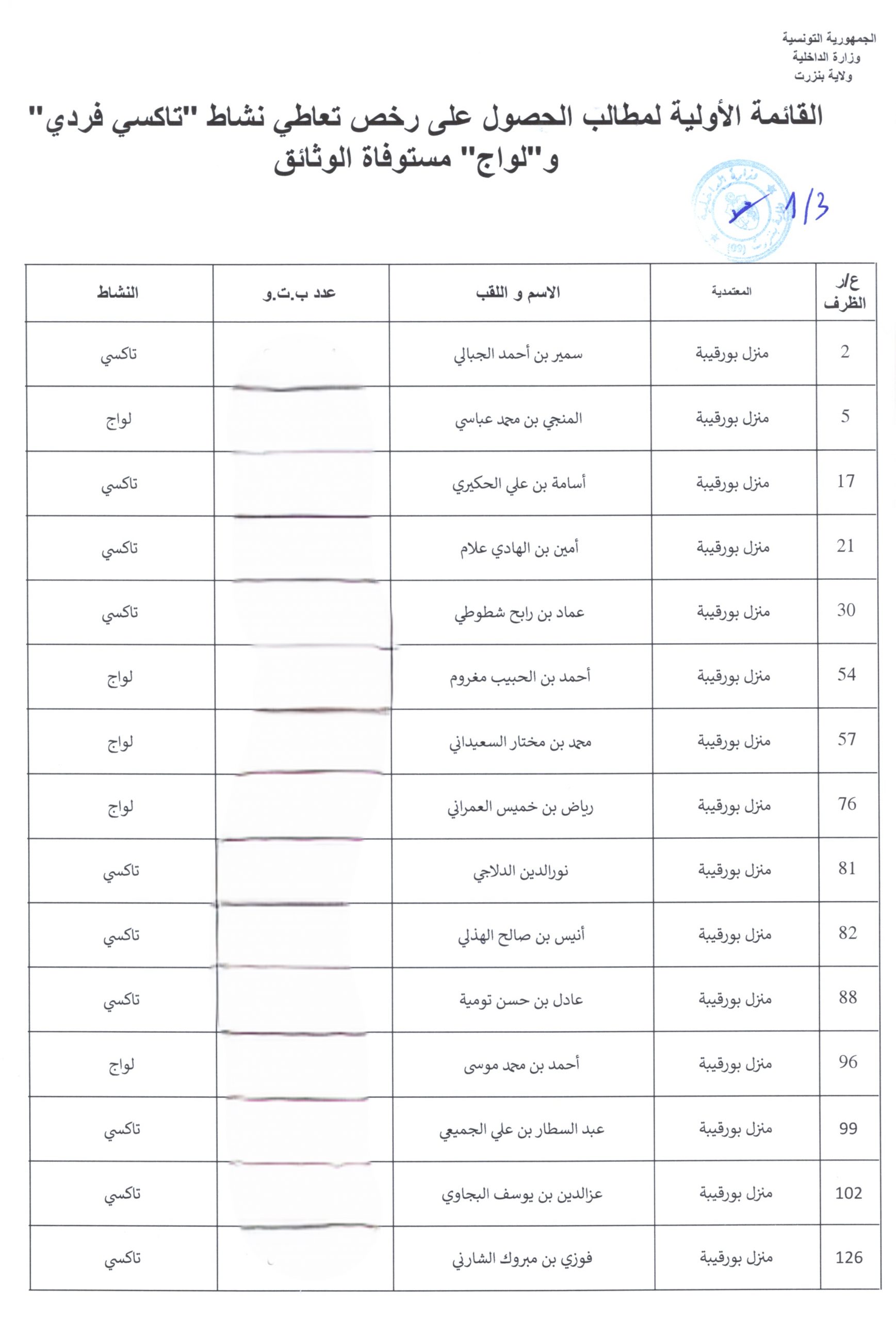 بلاغاتنشاط ** القائمة الأولية لمطالب الحصول على رخصة تعاطي نشاط ” تاكسي فردي ” و” لواج ” مستوفاة الوثائق بمعتمدية منزل بورقيبة في فبراير 18, 2026 0 عدد المشاهدات : 52 0 Share