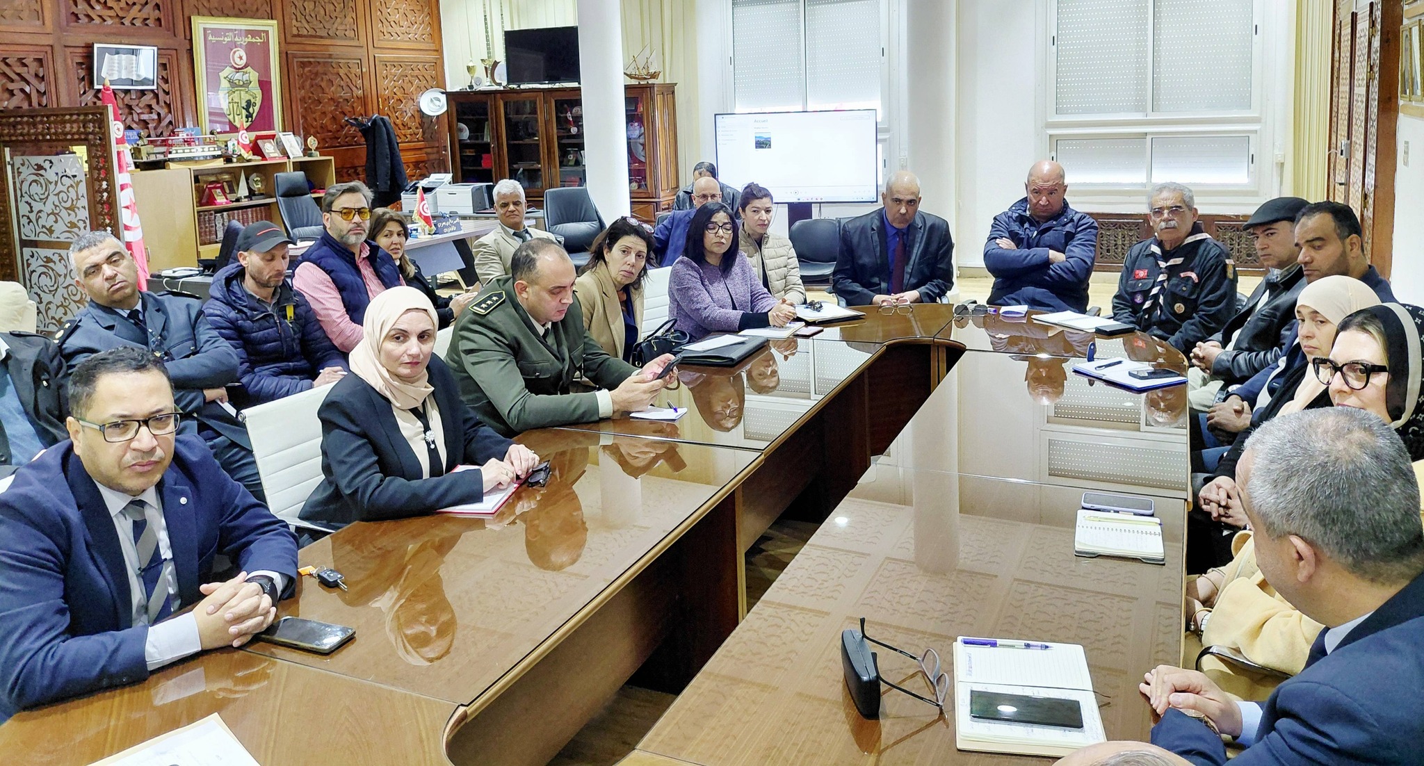 مثل موضوع ضبط مجمل الاستعدادات اللوجستية والتنظيمية الواجبة لانجاح فعاليات الدورة العاشرة للمهرجان الوطني الطالبي للعدو المبرمج تنظيمها بولاية بنزرت يوم 9 افريل المقبل 2026 ، ابرز محاور جلسة العمل المنتظمة اليوم الخميس بمقر الولاية باشراف والي بنزرت #سالم #بن #يعقوب وحضور كل من الكاتب العام للولاية عبد اللطيف حميد والمدير العام لديوان الخدمات الجامعية للشمال عبد الرؤوف بن فقيه ، وممثلي مختلف الهياكل المتدخلة الإدارية والأمنية والجامعية من أعضاء لجنة التنظيم .
