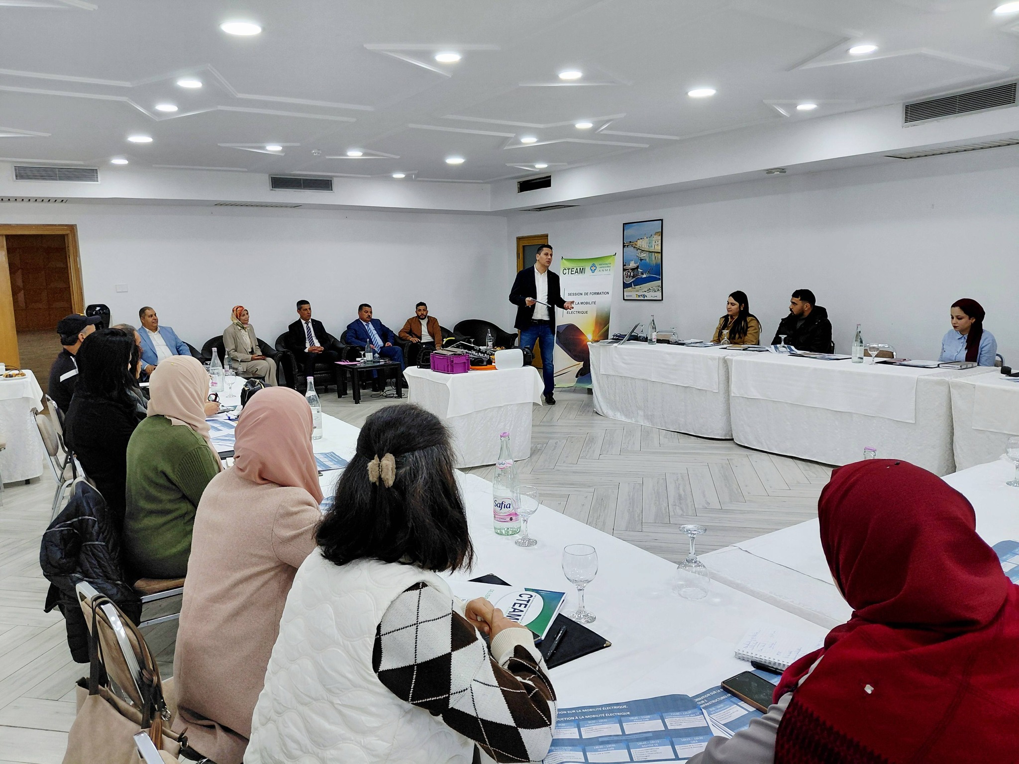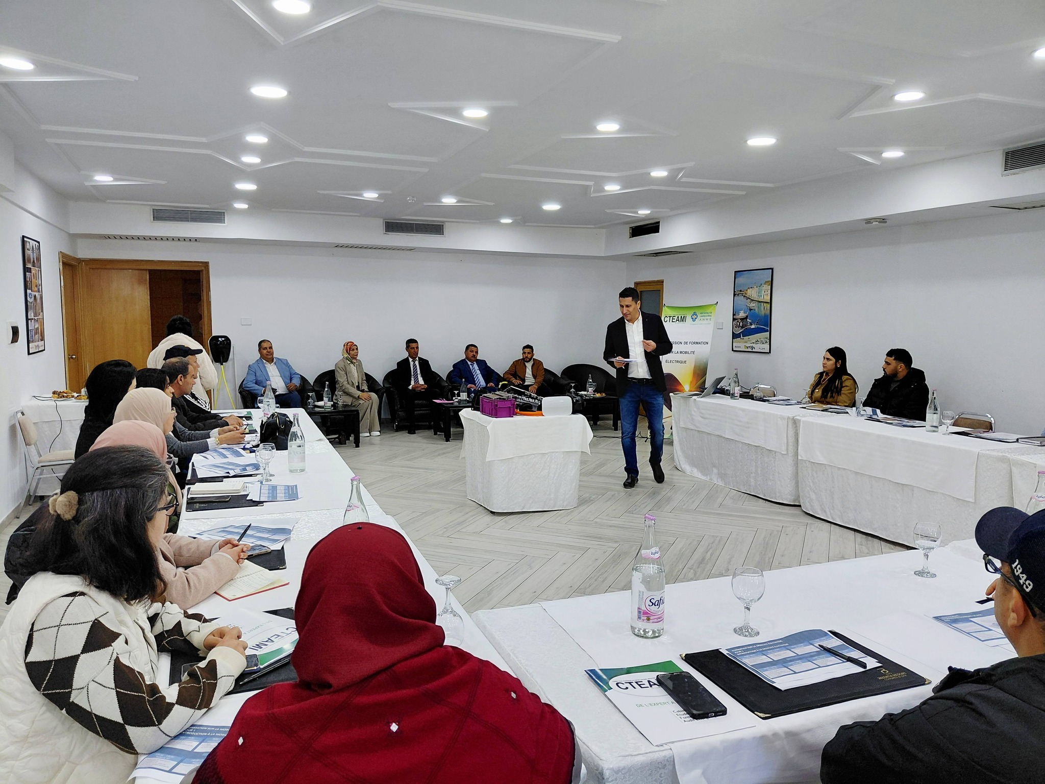 يشار ان فعاليات اليوم الأول من الدورة التدريبية والتكوينية تم فيها عرض مجموعة من التدخلات التي شفعت بنقاشات بين الحضور المدعوين وأعضاء لجنة التنظيم حول اهداف وتحديات برنامج التنقل الكهربائي وصناعات السيارات الكهربائية بينما يومي غد وبعد الغد في البرنامج عرض لمختلف التجهيزات والمكونات المعتمدة في السيارات الكهربائية ومكملاتها وطرق الصيانة والتعهد وأيضا التمويل وغيرها من المسائل التي من شانها التنفيذ الناجع للبرنامج بالجهة .