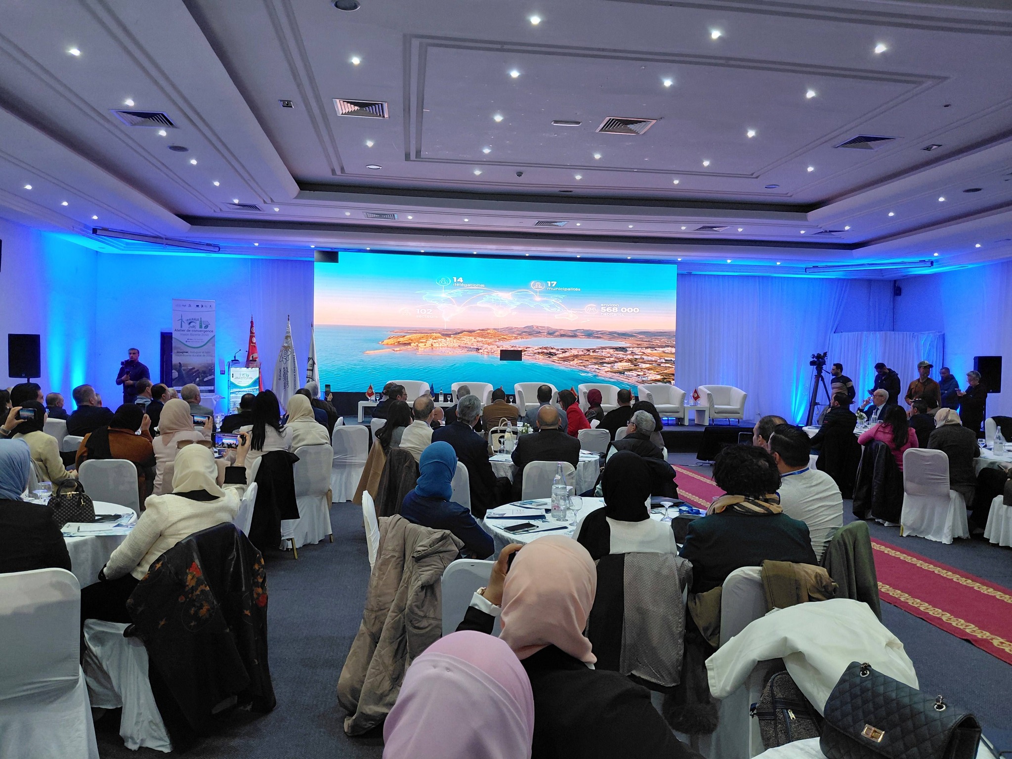 علما وان فعاليات اليوم الأول للورشة التي ستتواصل حتى نهار يوم غد الخميس ، واكبها مختلف الفاعلين والمتدخلين في الشأن التنموي من خبراء ومهنيين وممثلي الهياكل العمومية والقطاع الخاص والنسيج المنظماتي والمجتمعي عموما ، وتم فيها في اطار جلسات عمل ونقاشات مثمرة التداول خاصة بين الحضور في مدى تناسق ووضعية المشاريع الكبرى التي بصدد الإنجاز بالجهة سواء منها المتعلقة بالبنية التحتية والنقل ومنها مشروع جسر بنزرت الجديد و الأقطاب الاقتصادية ومنها المشاريع المينائية و المناطق اللوجستية والصناعية ، والبيئة والتهيئة العمرانية وذلك في علاقة بحماية الشريط الساحلي والتجديد العمراني وإزالة التلوث عن بحيرة بنزرت ، والطاقة والرقمنة في علاقة بالانتقال الطاقي والطاقات المتجددة والبنية الرقمية وأيضا قطاعي الفلاحة والسياحة، بالإضافة لتقييم مدى مطابقة المشاريع الجارية للرؤية الاستراتيجية في افق 2050.