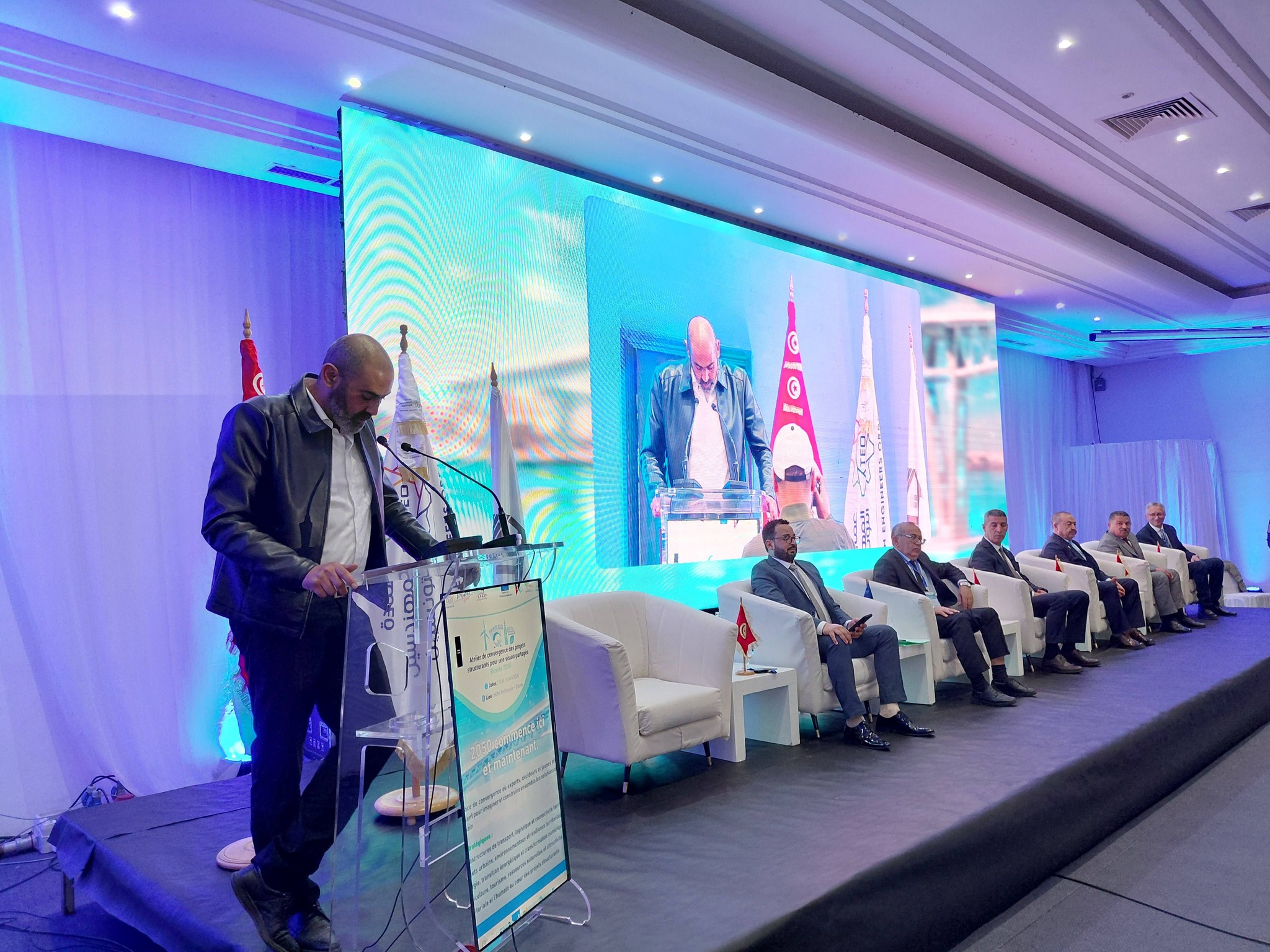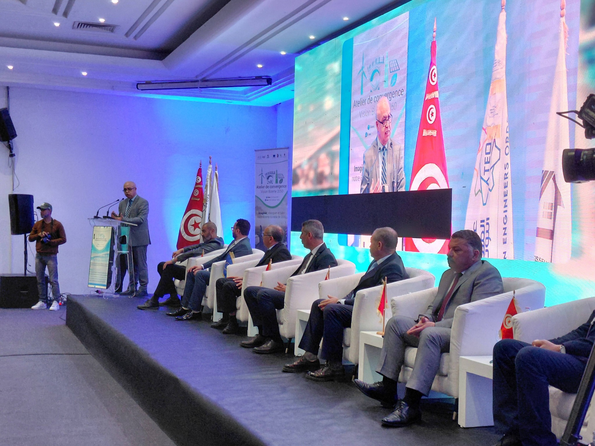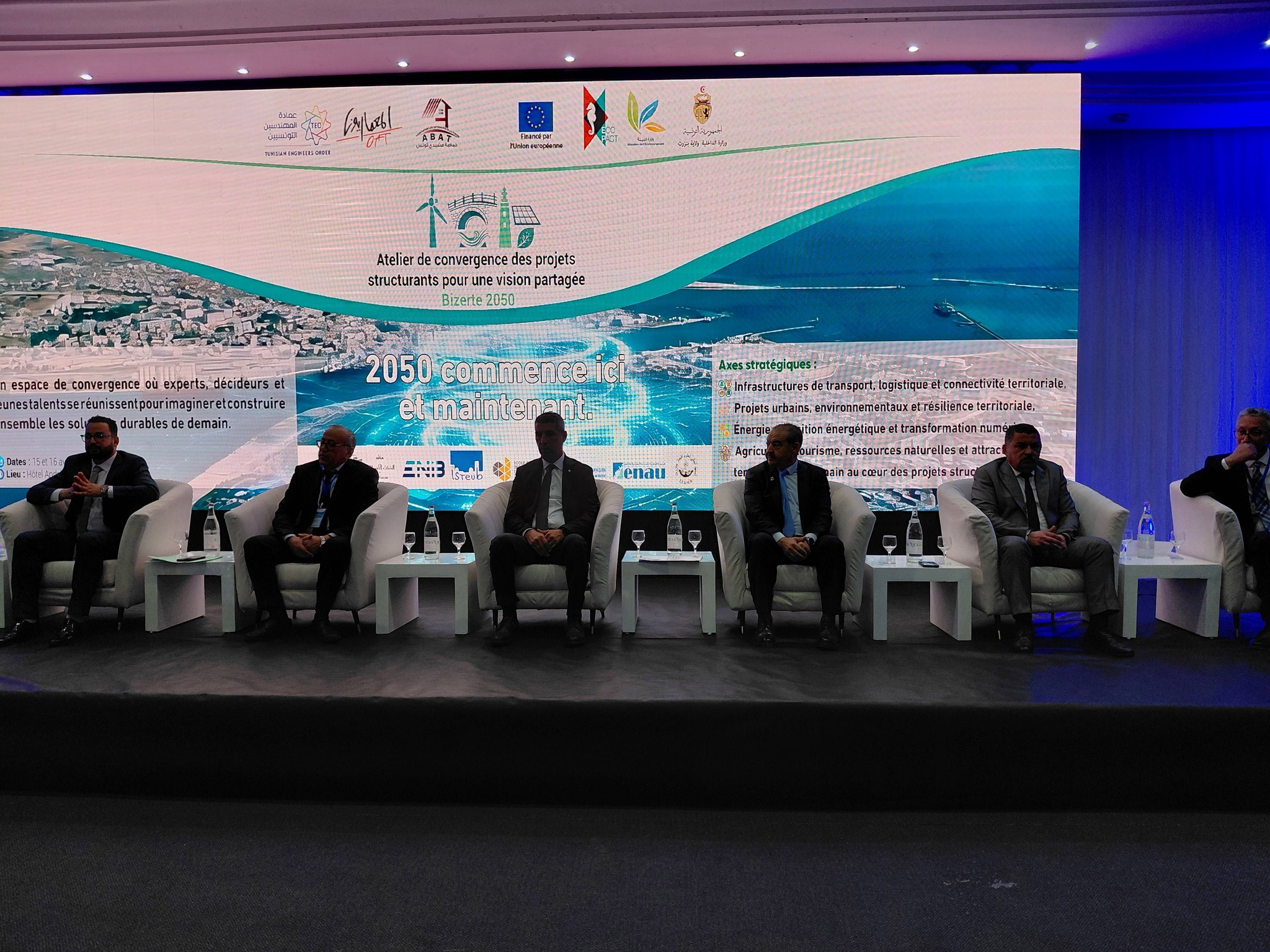 مثل عرض ومناقشة ابرز المشاريع المهيكلة واستشراف الرؤى والتوجهات الاستراتيجية الكفيلة بدعم مسار تنمية ترابية مستدامة وشاملة ، ابرز محاور ورشة العمل الجهوية والإقليمية التي نظمتها اليوم بدعم من #وزارة #البيئة وتحت إشراف #ولاية #بنزرت كل من الهيئة الجهوية لعمادة المهندسين ببنزرت والنيابة الجهوية لهيئة المهندسين المعماريين التونسيين ببنزرت وجمعية مشيدي تونس ، وذلك تحت شعار ” المشاريع المهيكلة بالجهة ورؤية التنمية في افق 2050″