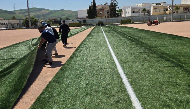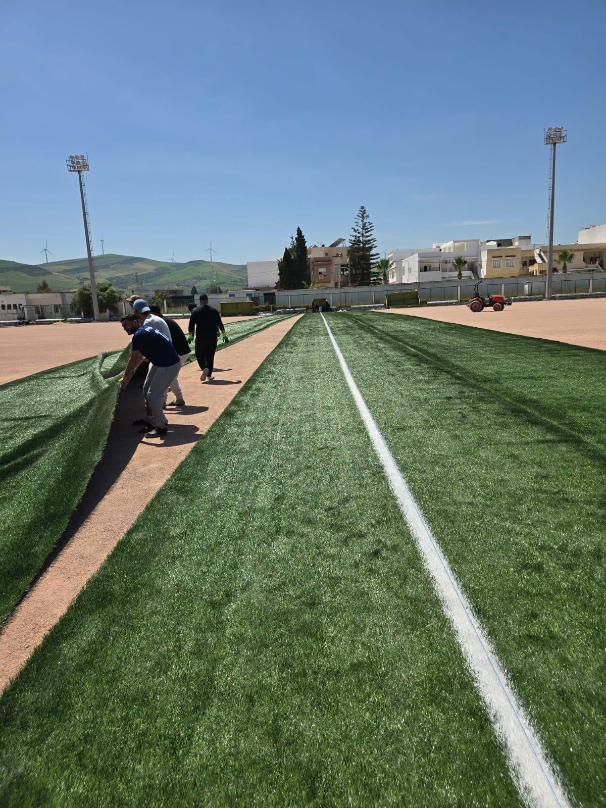 تم اليوم الانطلاق في اشغال فرش العشب الاصطناعي للملعب البلدي براس الجبل .