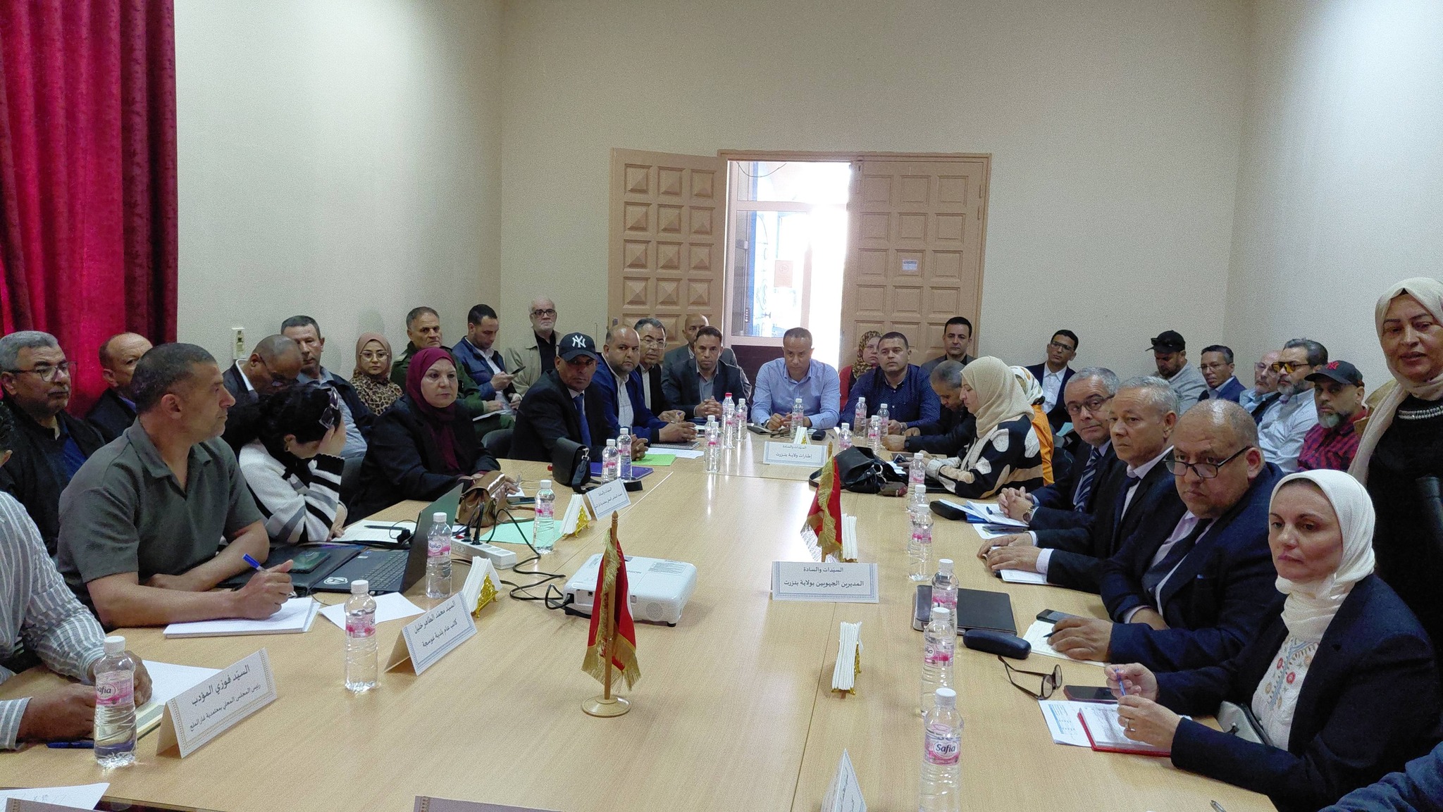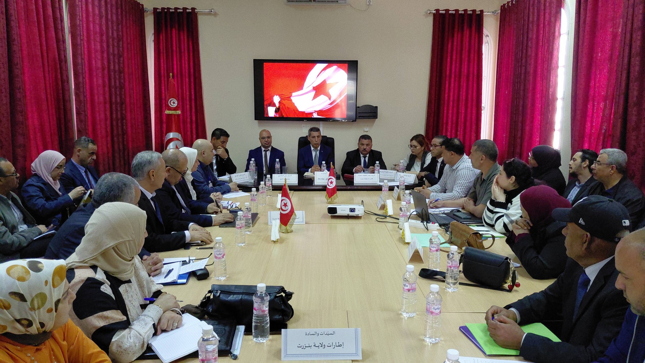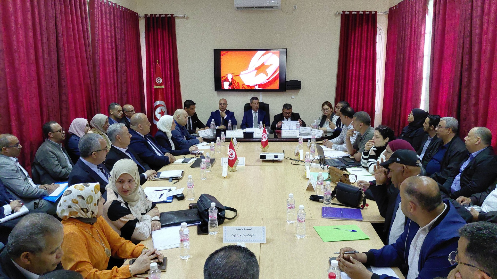 كما تم في ذات السياق بحضور كل من الكاتب العام للولاية عبد اللطيف حميد ومعتمد المنطقة بالنيابة رامي معمري والكتاب العامين المكلفين بتسيير بلدية غار الملح محمد الصادق الذيب وبلدية عوسجة محمد الطاهر خليل ، وعضو مجلس نواب الشعب يوسف طرشون والنائب الأول للمجلس الوطني للجهات والاقاليم زكية المعروفي والنائب بذات المجلس قيس اللواتي ، علاوة على كافة المديرين والمندوبين الجهويين ورؤساء المشاريع العمومية الجارية بالمنطقة ،وثلة من ممثلي النسيجين المنظماتي والمجتمعي ، التداول المباشر والنقاش المستفيض والبناء بشان كافة تساؤلات ومشاغل ومطالب الحضور من اعضاء المجلس المحلي ، والتي تفاعل معها #والي #بنزرت والكاتب العام للولاية وايضا الحضور الإداري والفني بطريقة مباشرة وحينية ، مع إقرار ما يجب من تدابير عملية للمتابعة والتنسيق المشترك بشان المشاغل ذات البعد المحلي والجهوي والمركزي ، وأيضا توضيح بعض المعطيات للحضور من النواب بشان ملاحظاتهم وإستفساراتهم ومطالبهم التي تعلقت خاصة بمجالات وقطاعات الصحة والتنمية الفلاحية والسياحية والبنية الاساسية من طرقات ومسالك وتطهير وشباب ورياضة وثقافة وتربية ومسائل الشؤون الاجتماعية والبيئية والمراة والاسرة والطفولة وكبار السن ،علاوة على المشاغل المتعلقة بتعزيز مرافق وخدمات الربط بالماء الصالح للشرب والانارة العمومية والفردية والبريد والاتصالات والنقل المنتظم وغير المنتظم