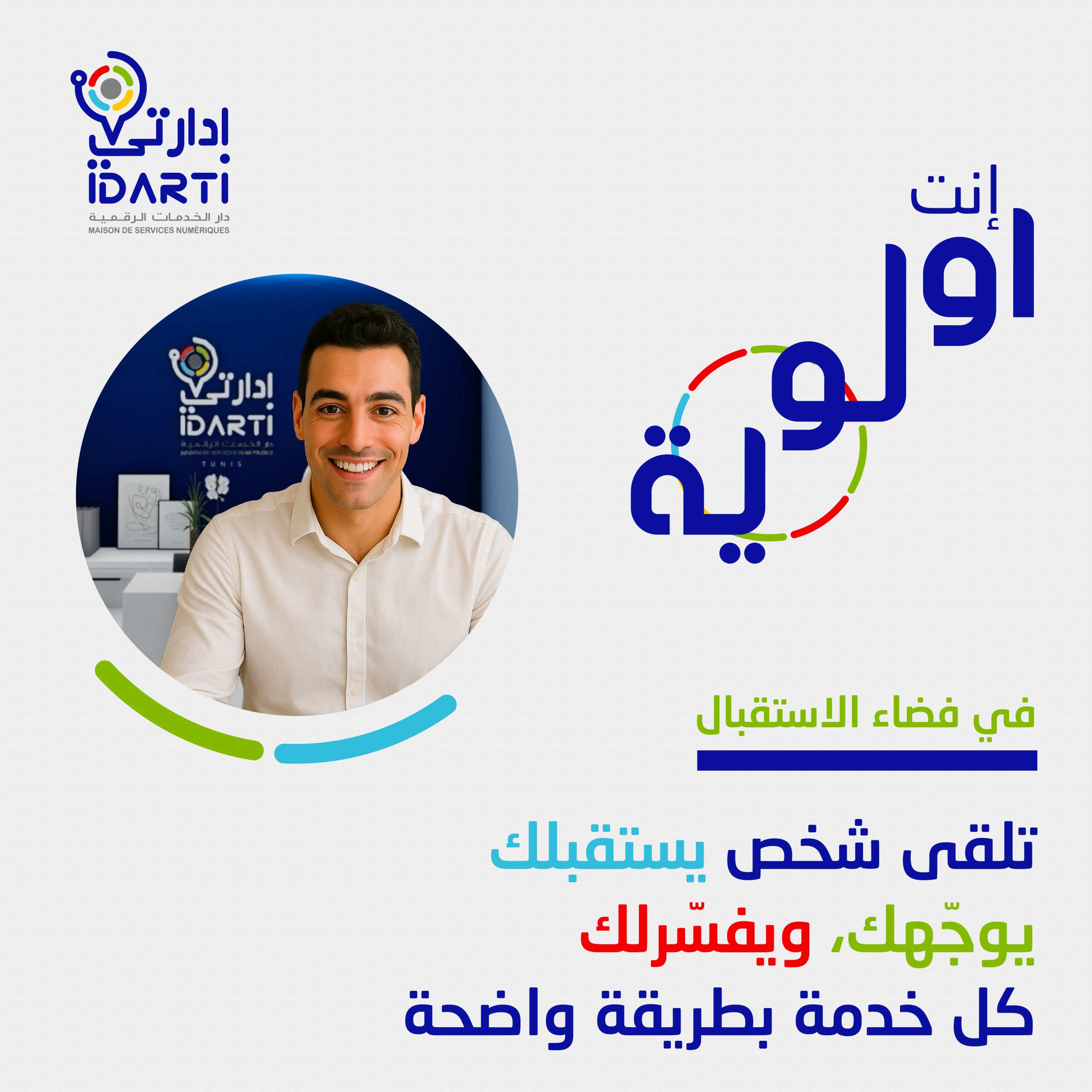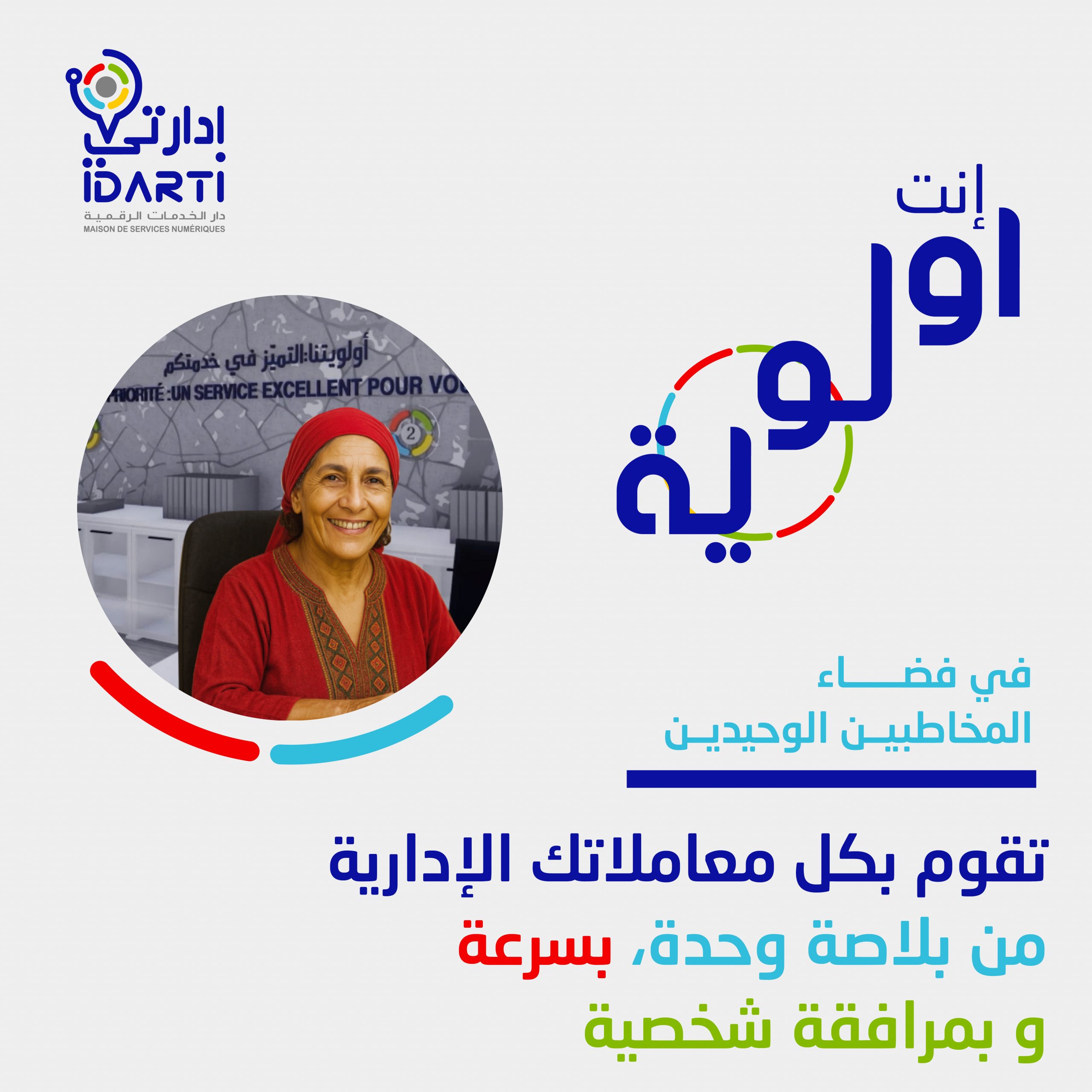 انت أولوية… إدارتي ، في قلب البلدية ، توجهك وتسهلك الخدمات الادارية .